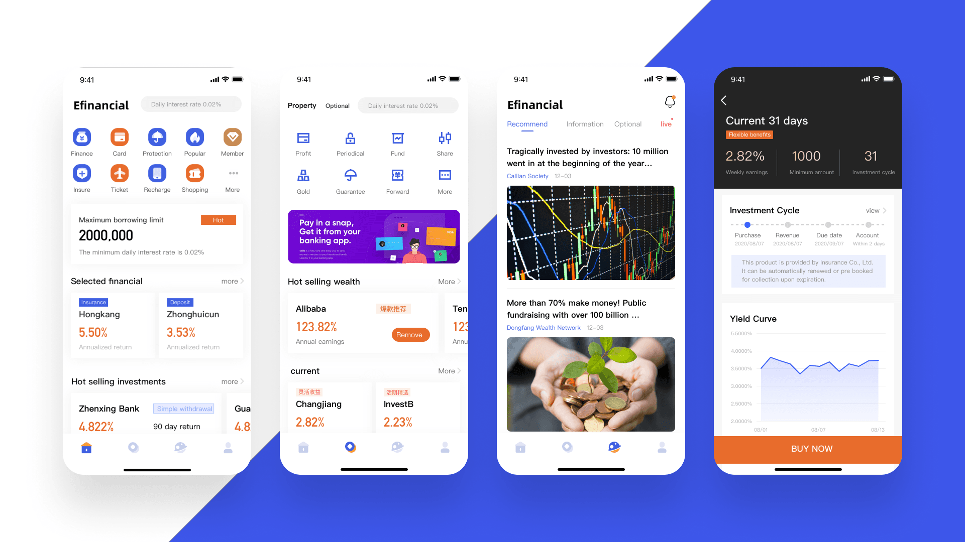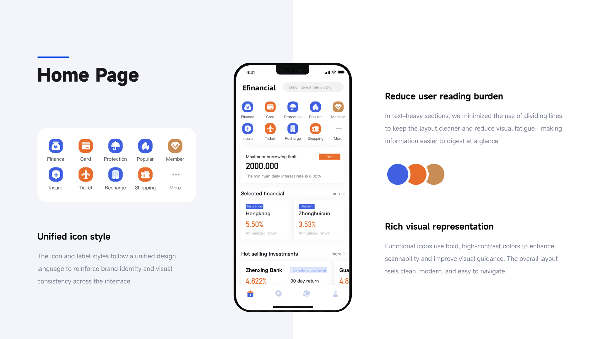 Efinancial is a conceptual mobile platform that explores how to help users manage their finances more intuitively. It offers a range of services—from savings and investments to insurance and personal finance insights.