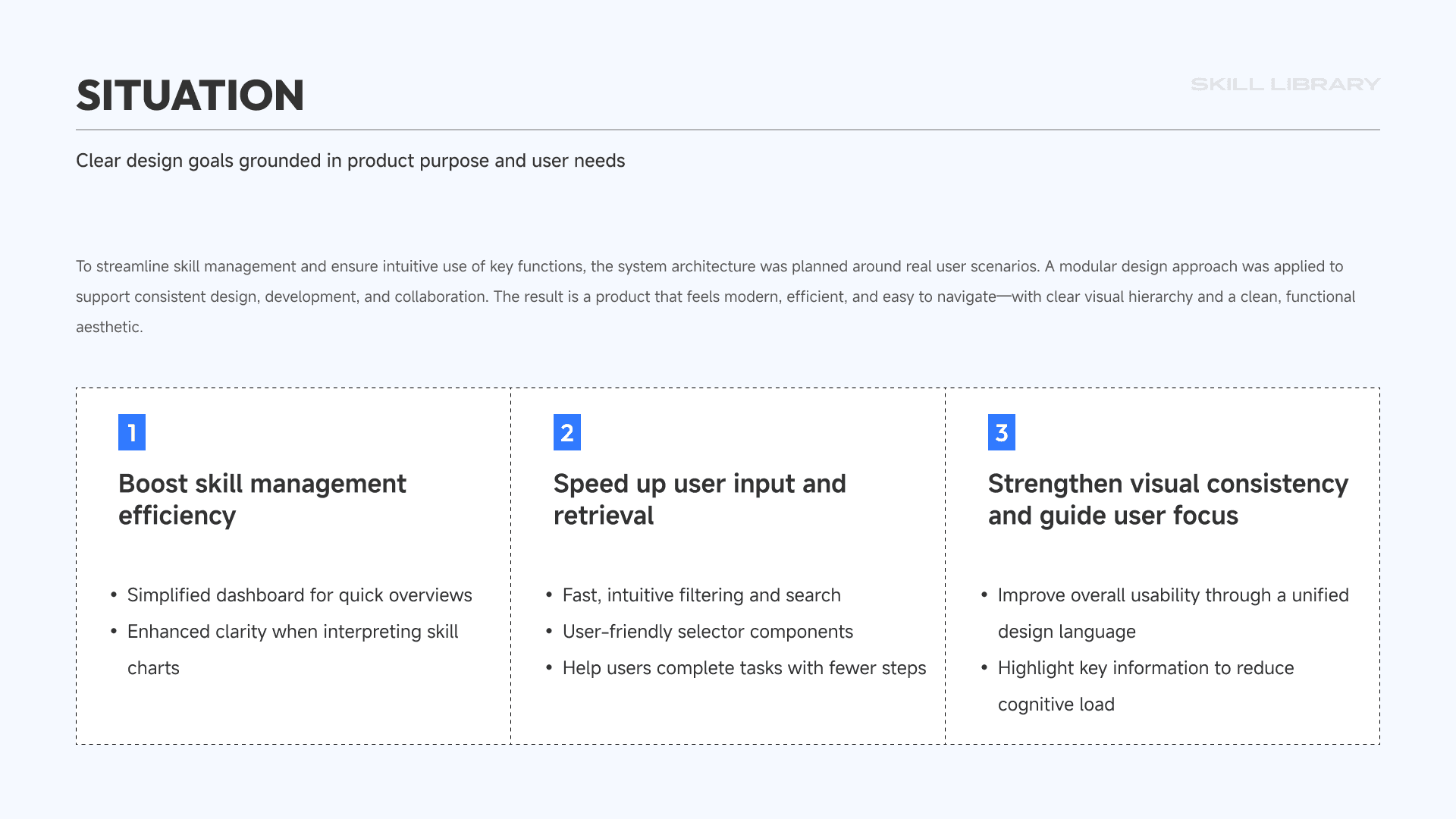 Skill configuration is high-frequency, high-friction. We used dynamic forms with partial refresh to keep users in flow:
