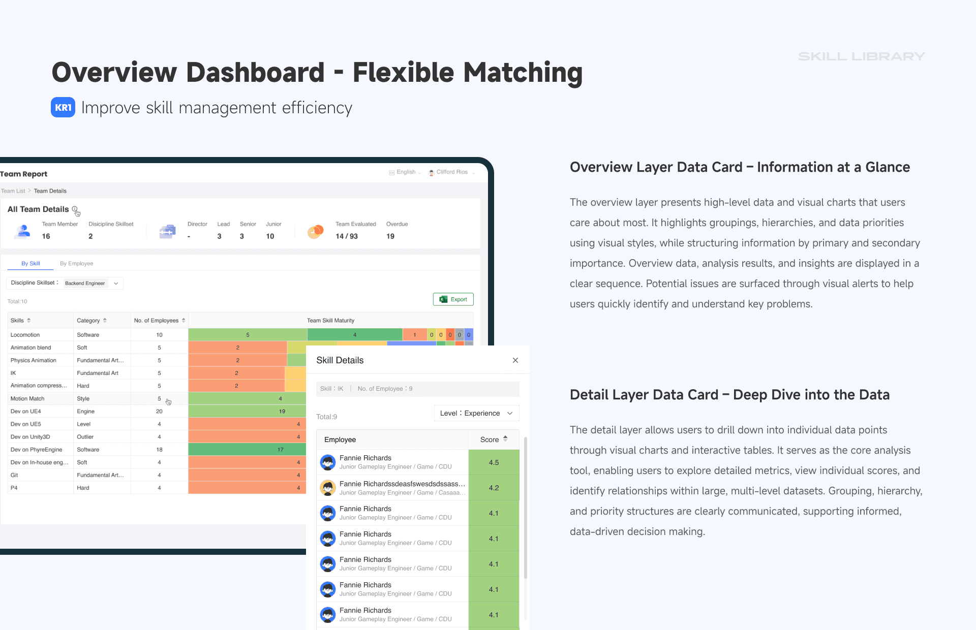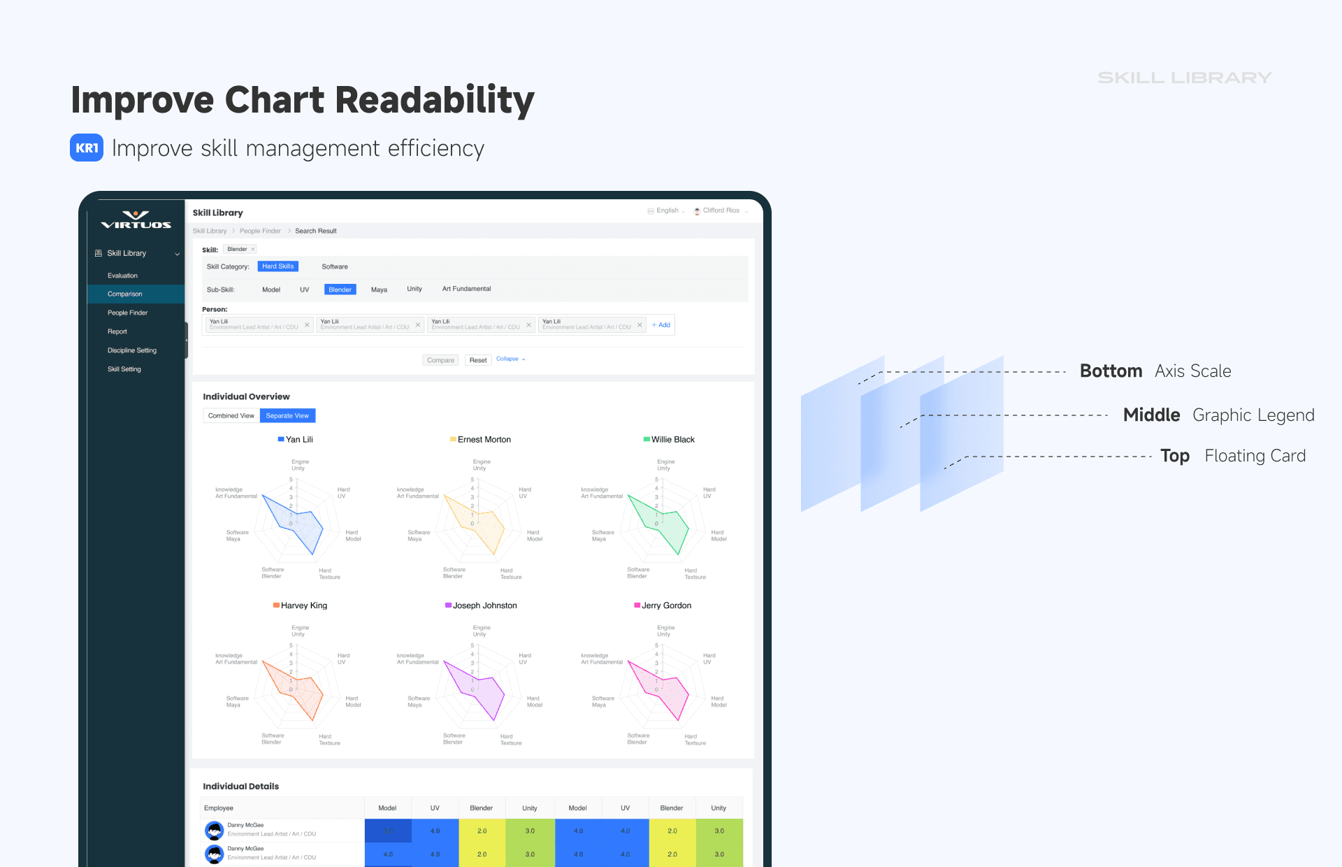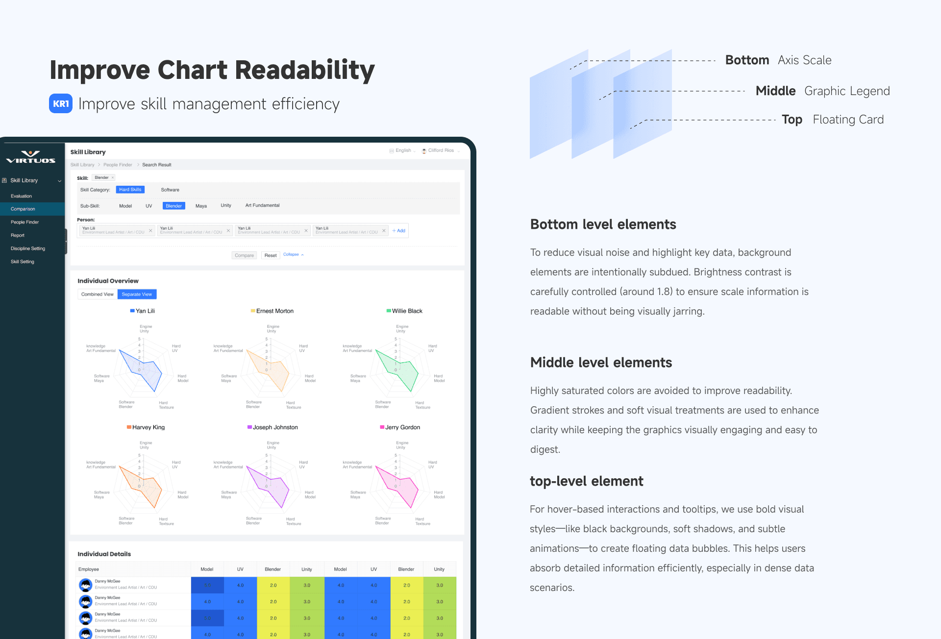 Whether you’re building a team or promoting a lead, comparison matters. We used a combination of radar charts and heatmaps to visualize individual strengths and gaps.